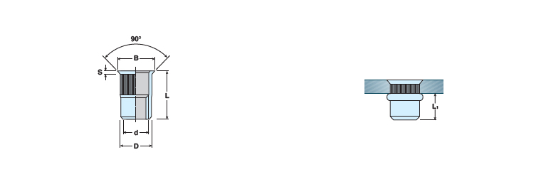 Inserti filettati a testa ridotta in acciaio zincato zigrinati