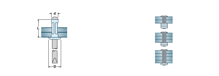 CodiceDescrizioneRIVETTO UNIGRIP 4 X 9 TUTTO INOXd(mm) diametro4L(mm) lunghezza9D(mm)8Foro(mm)4,2Spessore(mm)3÷5Rottura a trazione3600Rottura a taglio3000Pz. scatola500 Qtà